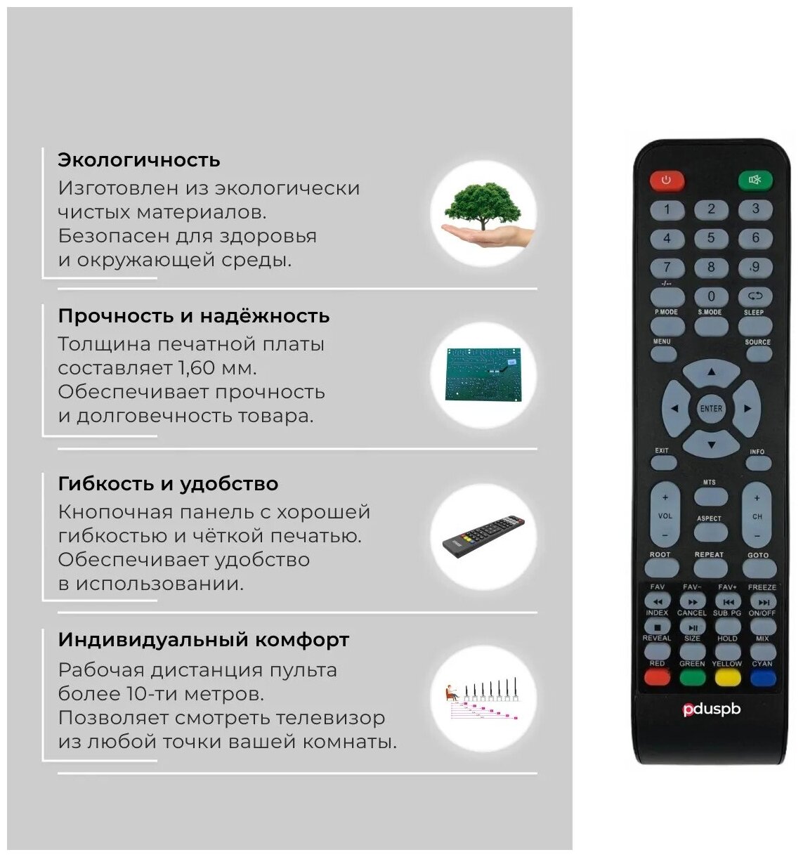 Пульт PDUSPB CX-507 для Akai / HELIX / Telefunken / DNS / Hyundai / Galatec / Mystery / Erisson / Manta / Pheonix Gold