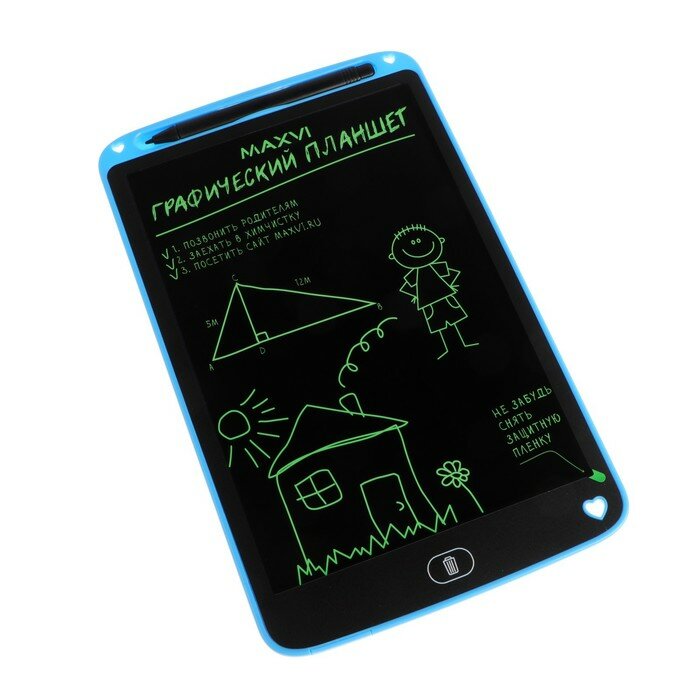 Графический планшет для рисования и заметок LCD Maxvi MGT-02, 10.5”, угол 160°,CR2016, синий интересное: