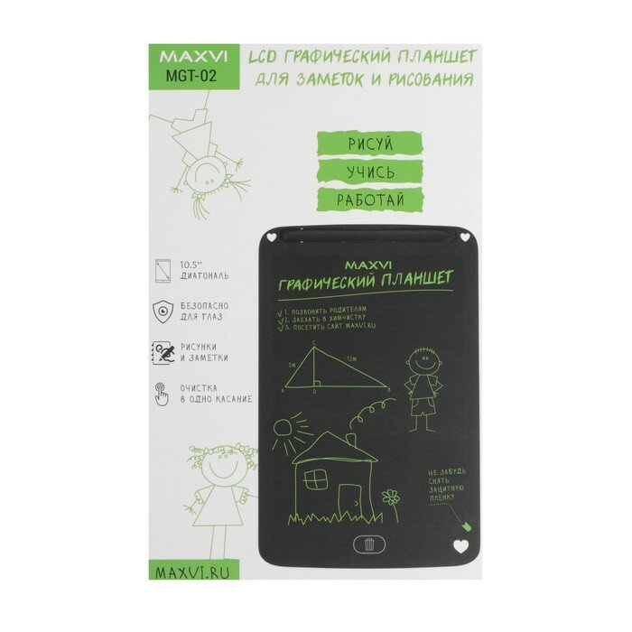 Графический планшет для рисования и заметок LCD Maxvi MGT-02, 10.5”, угол 160°,CR2016,черный интересное: