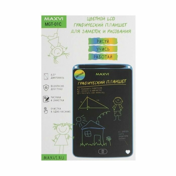 Купить Графический планшет для рисования и заметок LCD Maxvi MGT-01С, 8.5”, цветной дисплей, синий