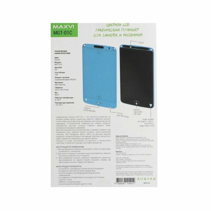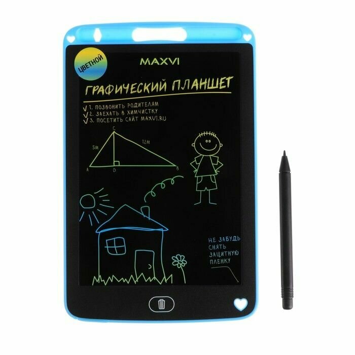 Графический планшет для рисования и заметок LCD Maxvi MGT-01С, 8.5”, цветной дисплей, синий интересное: