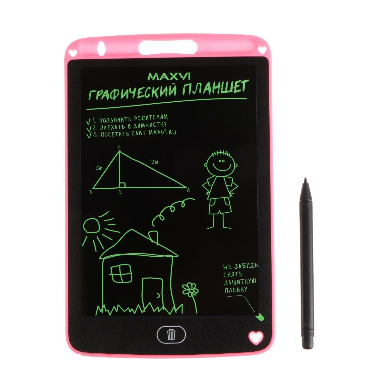 Графический планшет для рисования и заметок LCD Maxvi MGT-01, 8.5”, угол 160°,CR2016, розовы интересное: