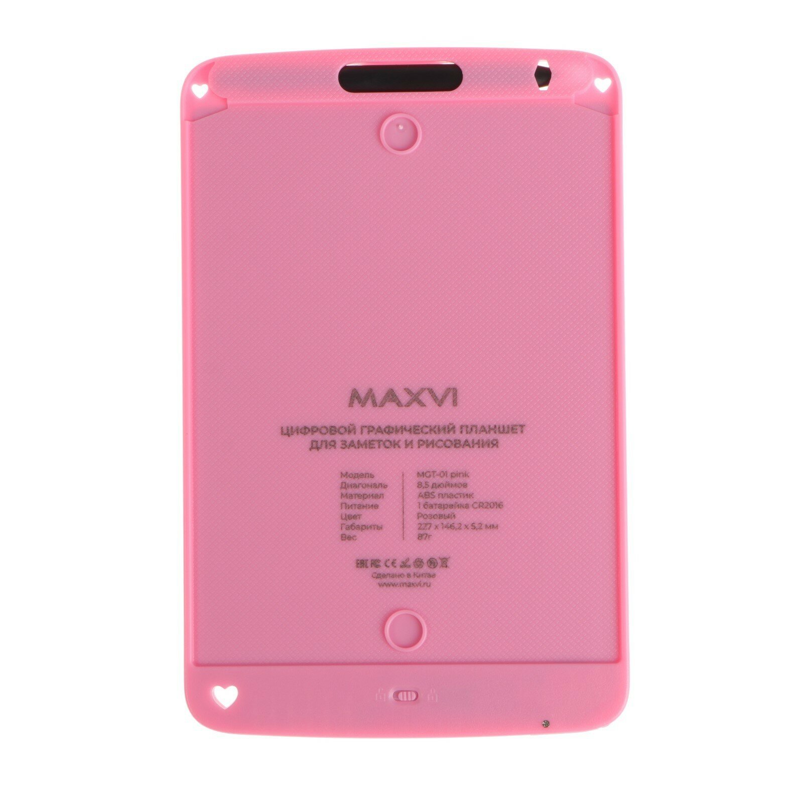 Купить Графический планшет для рисования и заметок LCD Maxvi MGT-01, 8.5”, угол 160°,CR2016, розовы