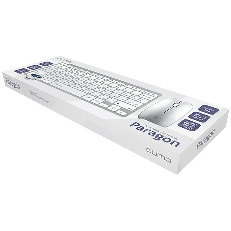 Комплект беспроводной клавиатура+мышь Qumo Paragon K15/M21, Wireless, Серебристый/Белый 24188 интересное: