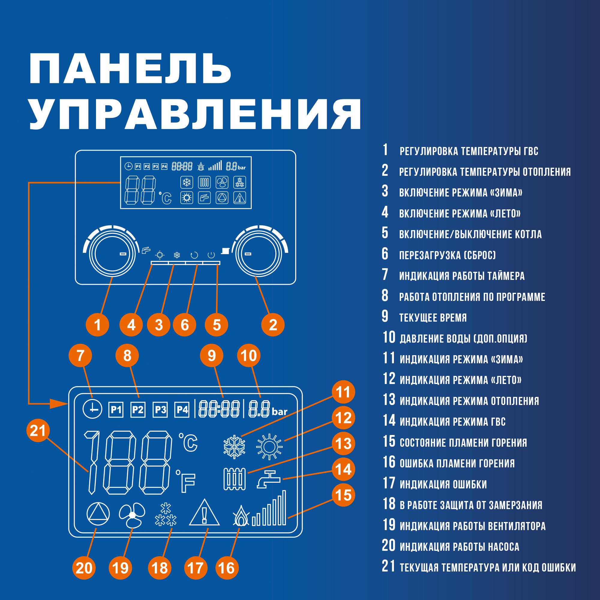 | Функции | автодиагностика, автоподжиг, защита от блокировки насоса, защита от замерзания, защита от перегрева, индикация включения, модуляция пламени, подключение теплого пола, программатор, электроподжиг |