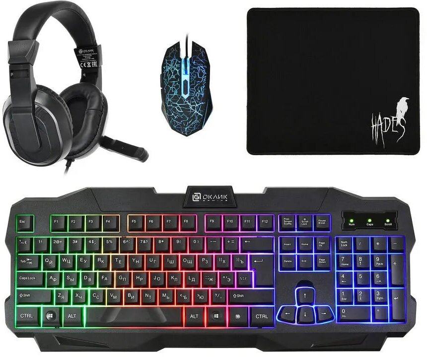 Купить Комплект клавиатура + мышь + гарнитура + коврик OKLICK, игровой комплект, комплект для компьютера