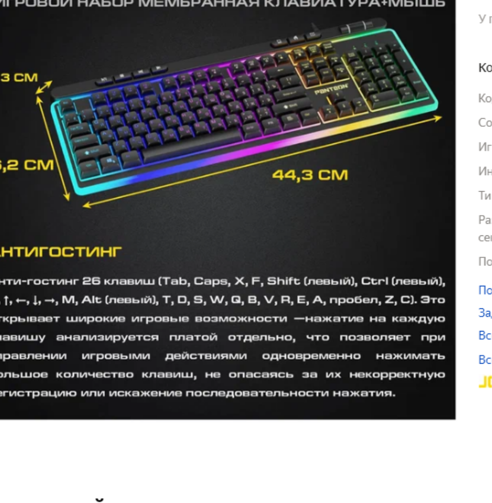 Игровой проводной набор с подсветкой PANTEON GS230 (мембранная клав. и мышь,программируемый),черный интересное: