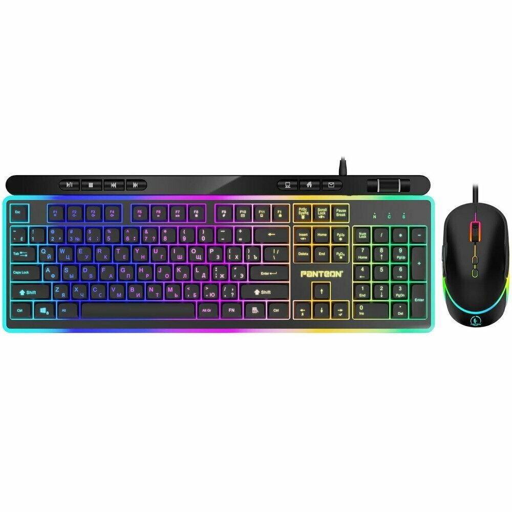 Игровой проводной набор с подсветкой PANTEON GS230 (мембранная клав. и мышь, программируемый), черный