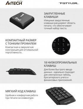 Цифровой блок A4Tech Fstyler FK13P, мембранная, проводная, USB, черный