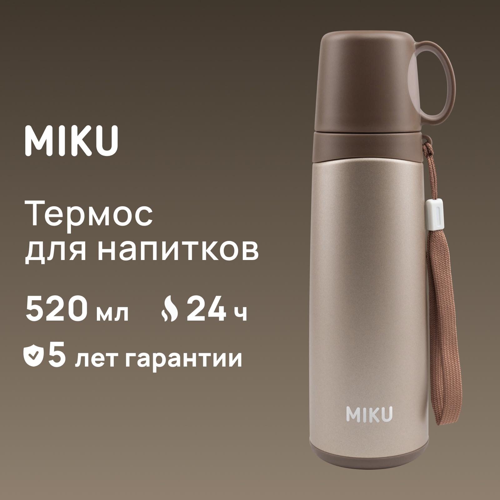 Термос для напитков MIKU 520 мл (Бежевый) интересное: