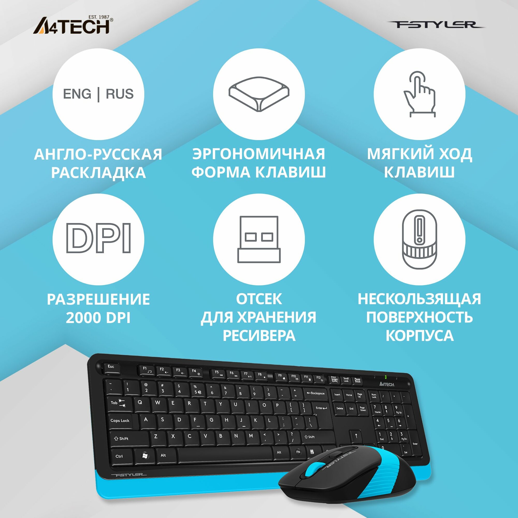 Комплект A4Tech Fstyler FG1010, USB, черный/синий