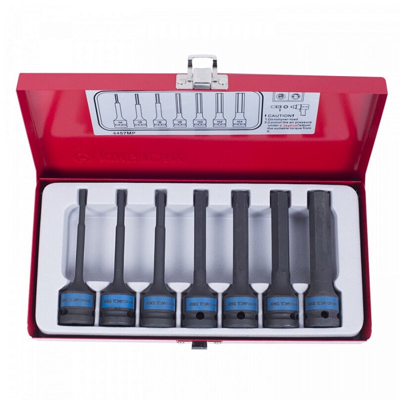 4457MP KING TONY Набор ударных торцевых насадок 1/2", HEX, 4-14 мм, L = 100 мм, 7 предметов
