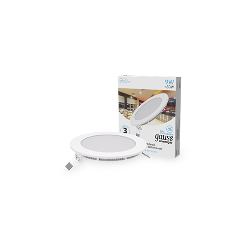 Купить Светильник светодиодный Slim ДВО 9Вт 4000К IP20 660лм 180-265В d130мм 145х22мм кругл. встраив. монтажный GAUSS 939111209 (1 шт.)