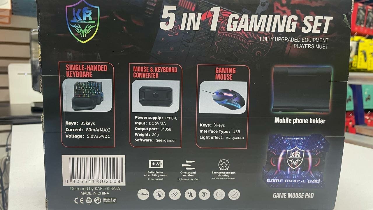 | Подробная комплектация | Коврик - 1шт., мешь - 1шт., клавиатура - 1шт., конвектор - 1шт., держатель для смартфона - 1шт. |