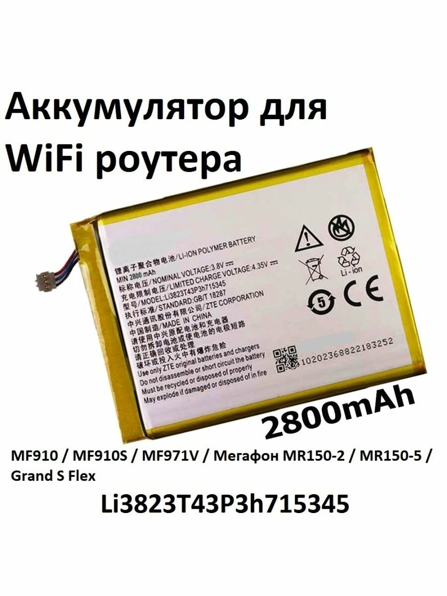Аккумулятор для роутера Мегафон MR150-2, MR150-5, МТС 835FT, MF910, MF920, ZTE Li3823T43P3h715345, Li3820T43P3h715345 - CS-ZTF230SL CameronSino интересное: