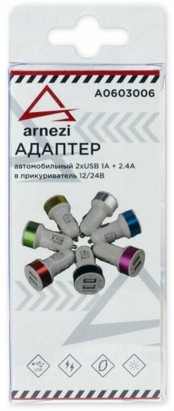 Ниже Вы можете прочитать отзывы на Адаптер автомобильный 2xUSB 5В 1А+2,4А в прикуриватель 12В/24В GOLD ARNEZI A0603006, ознакомится с подробными характеристиками, посмотреть интересные обзоры и фотографии на Адаптер автомобильный 2xUSB 5В 1А+2,4А в прикуриватель 12В/24В GOLD ARNEZI A0603006.