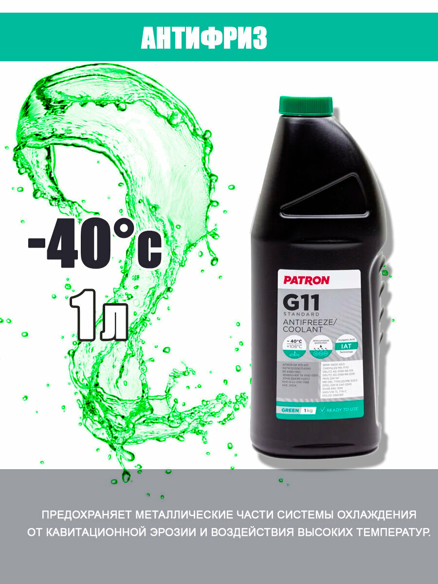 Антифриз 1кг (0.87л) - Зеленый Patron Green G11, Tl 774-C, Sae J1034, N600690, Ms-7170, Man 324 Nf, PATRON арт. PCF4001