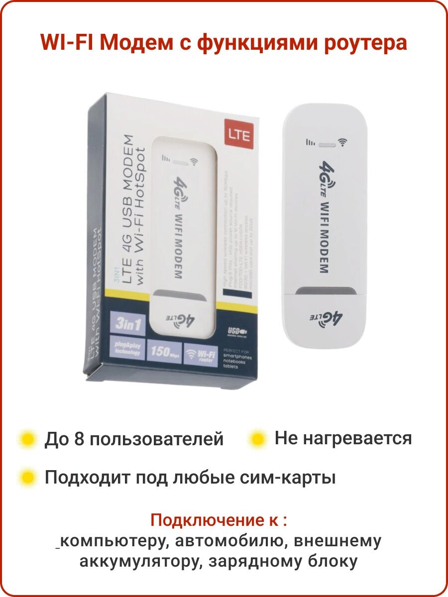 4G LTE USB Модем роутер , с раздачей интернета на любые устройства, 150Мбит, интересное: