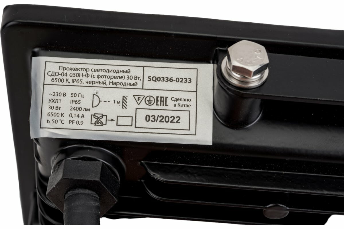 Прожектор светодиодный СДО-04-030Н-Ф (с фотореле) 30 Вт, 6500 К, IP65, черный, Народный Артикул SQ0336-0233