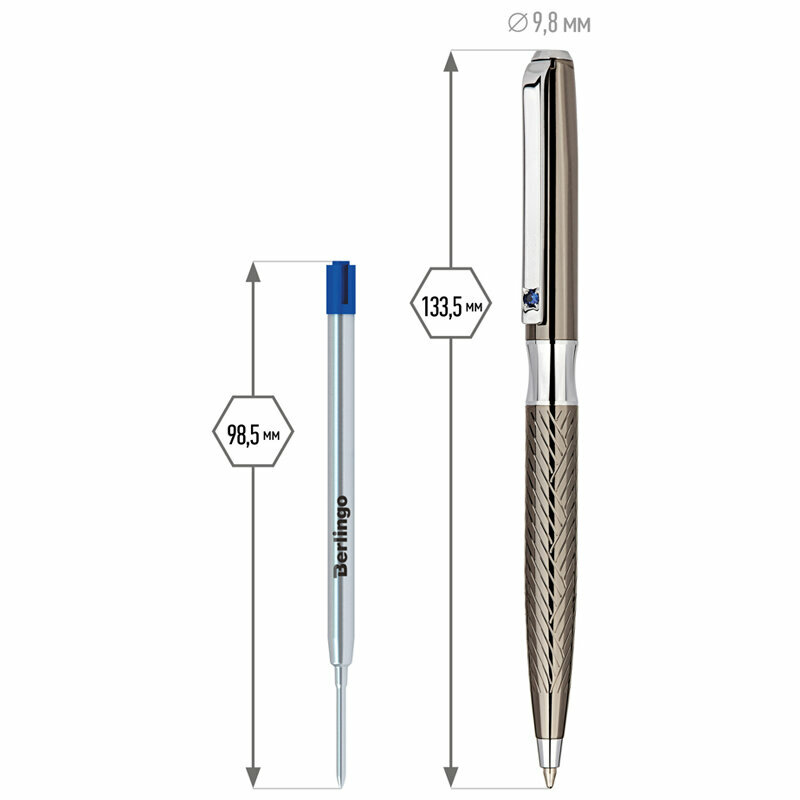 Ручка шариковая Delucci "Taglia" синяя 1,0мм, корпус оружейный металл/серебро, с кристалл, подарочная упаковка