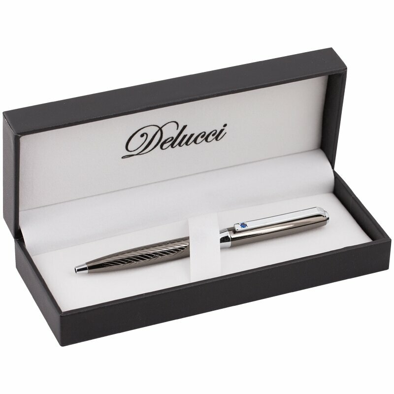Ручка шариковая Delucci "Taglia" синяя, 1,0 мм, корпус цвет оружейный металл/серебро, с кристалл, подарочная упаковка