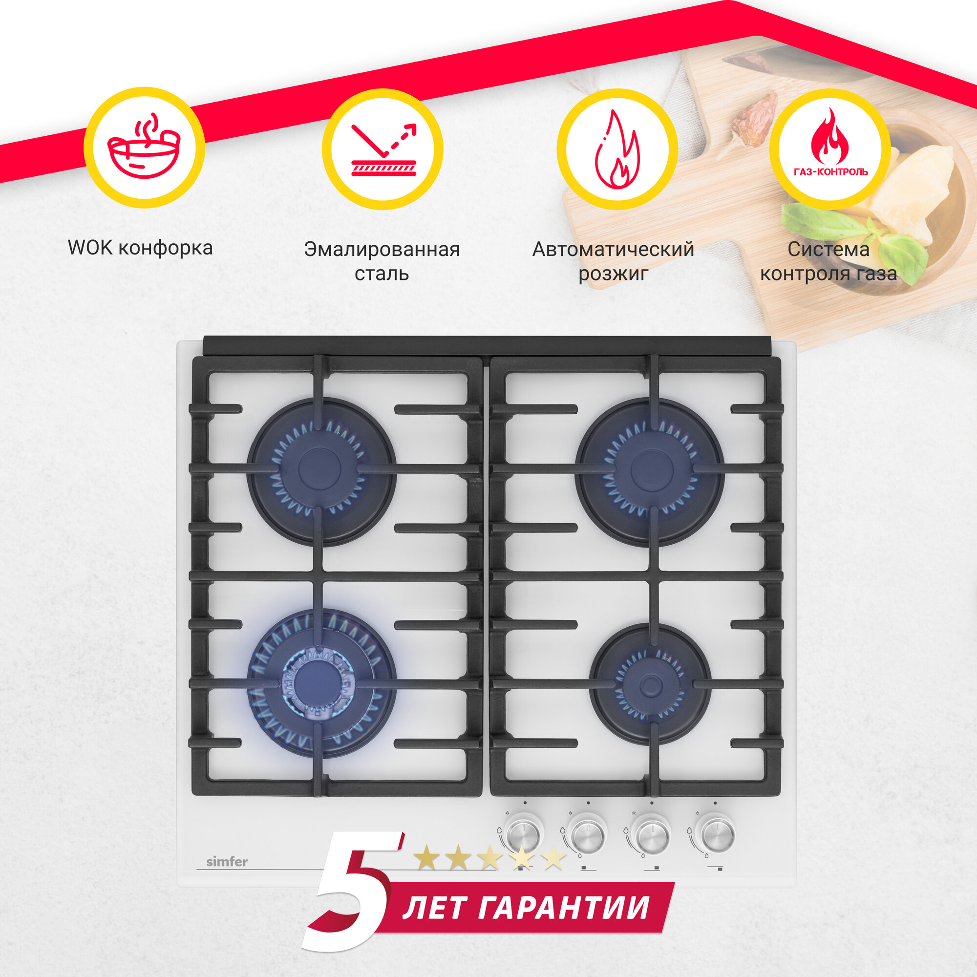 Газовая варочная панель Simfer H60H41С522 (с газ-контролем, эмаль)