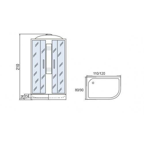 Душевая кабина мономах 110/80/24 МЗ R , 1100*800*2100, асимметричная