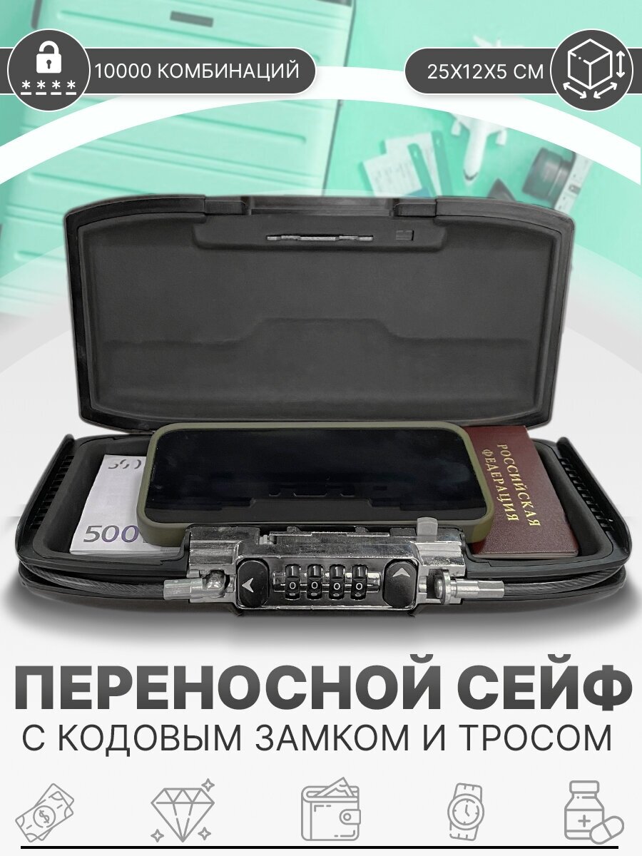 Переносной кодовый сейф с тросом / ручной сейф (черный) интересное: