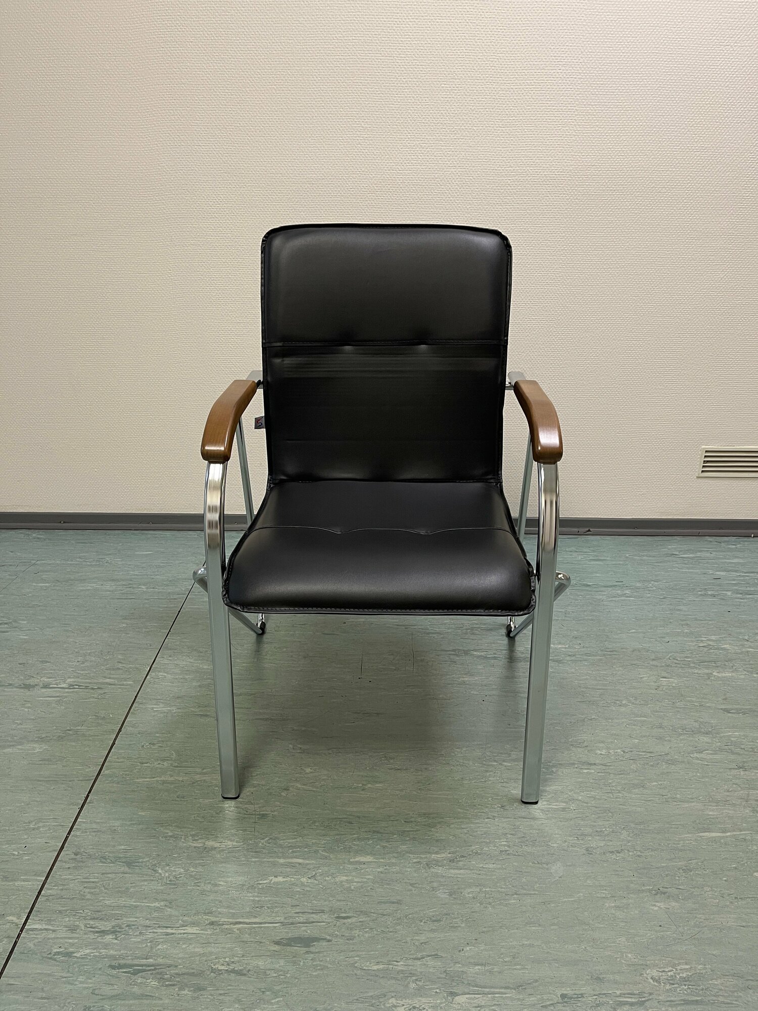Кресло Brabix для приемных и переговорных "Samba CF-103", хром, орех (D-8), к/з черный, собрано, 532756
