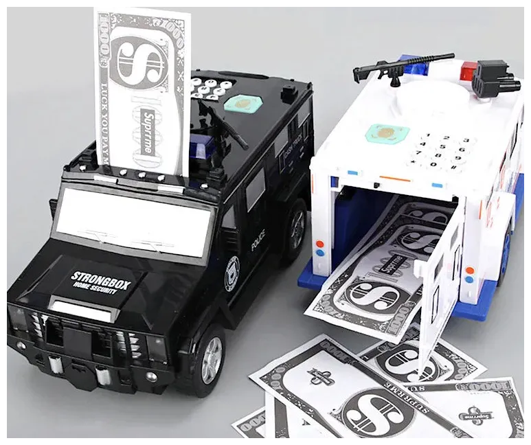 Копилка-сейф электронная машина полицейский Hummer черный интересное: