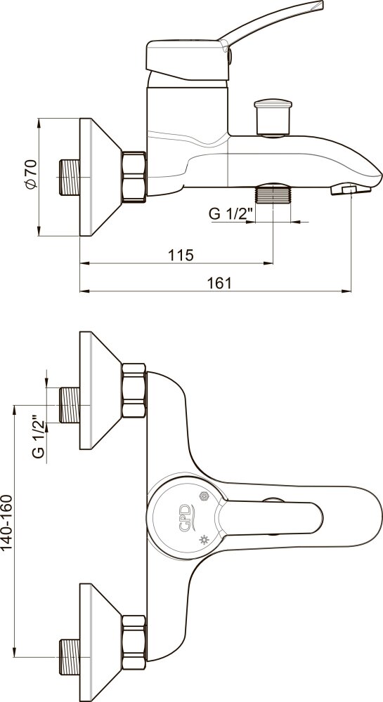 GPD Смеситель для ванны с душем GPD Primula MBB175