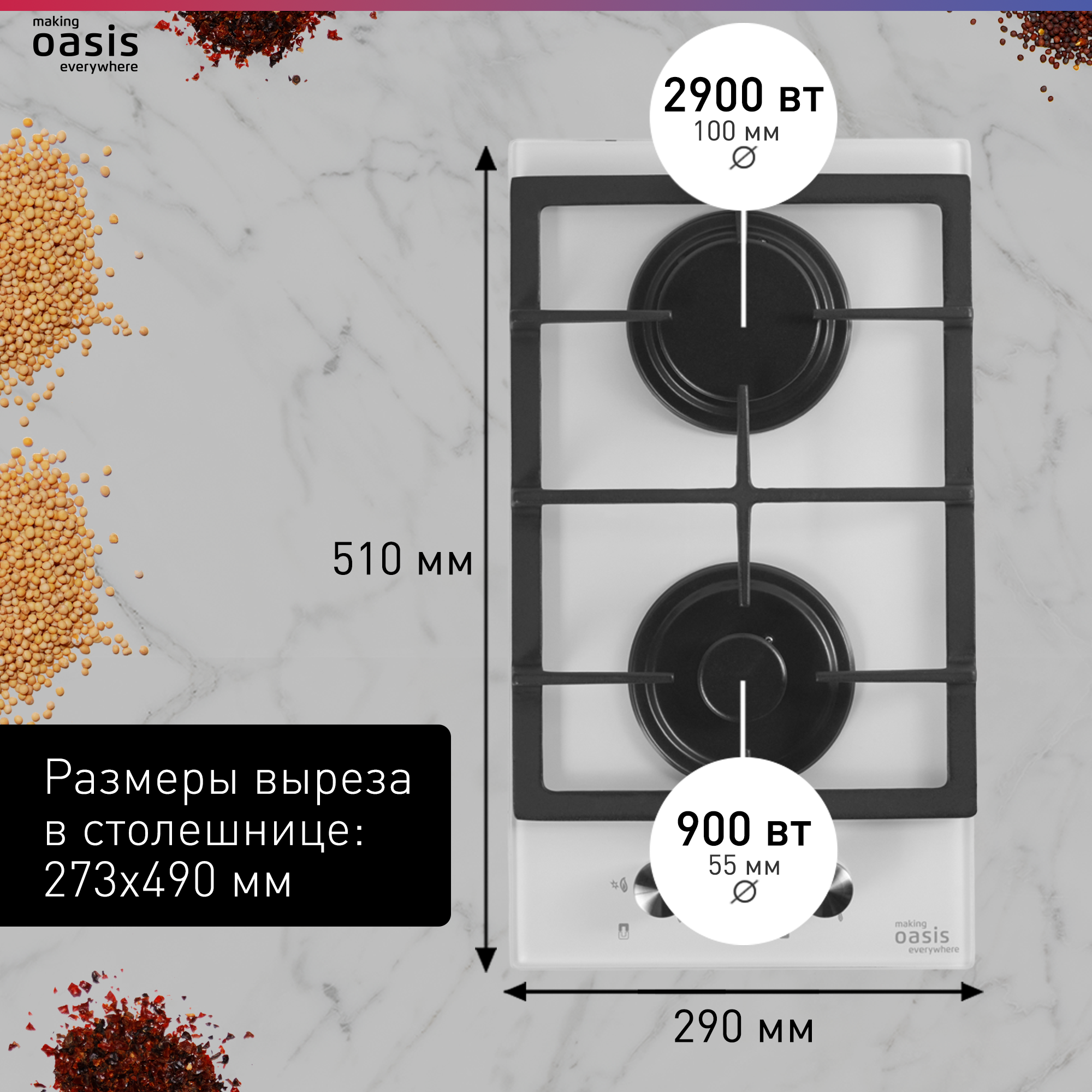 Газовая варочная панель встраиваемая Oasis P-GWD, 2 конфорки, белая