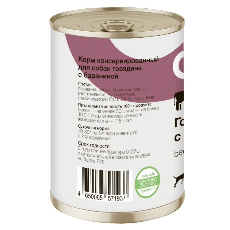 Корм Organix (консерв.) для собак, говядина с бараниной, 850 г x 6 шт