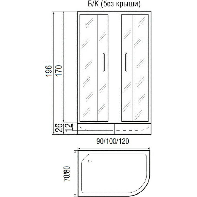 Душевое ограждение River Don 120/80/26 МТ L без поддона 10000000098