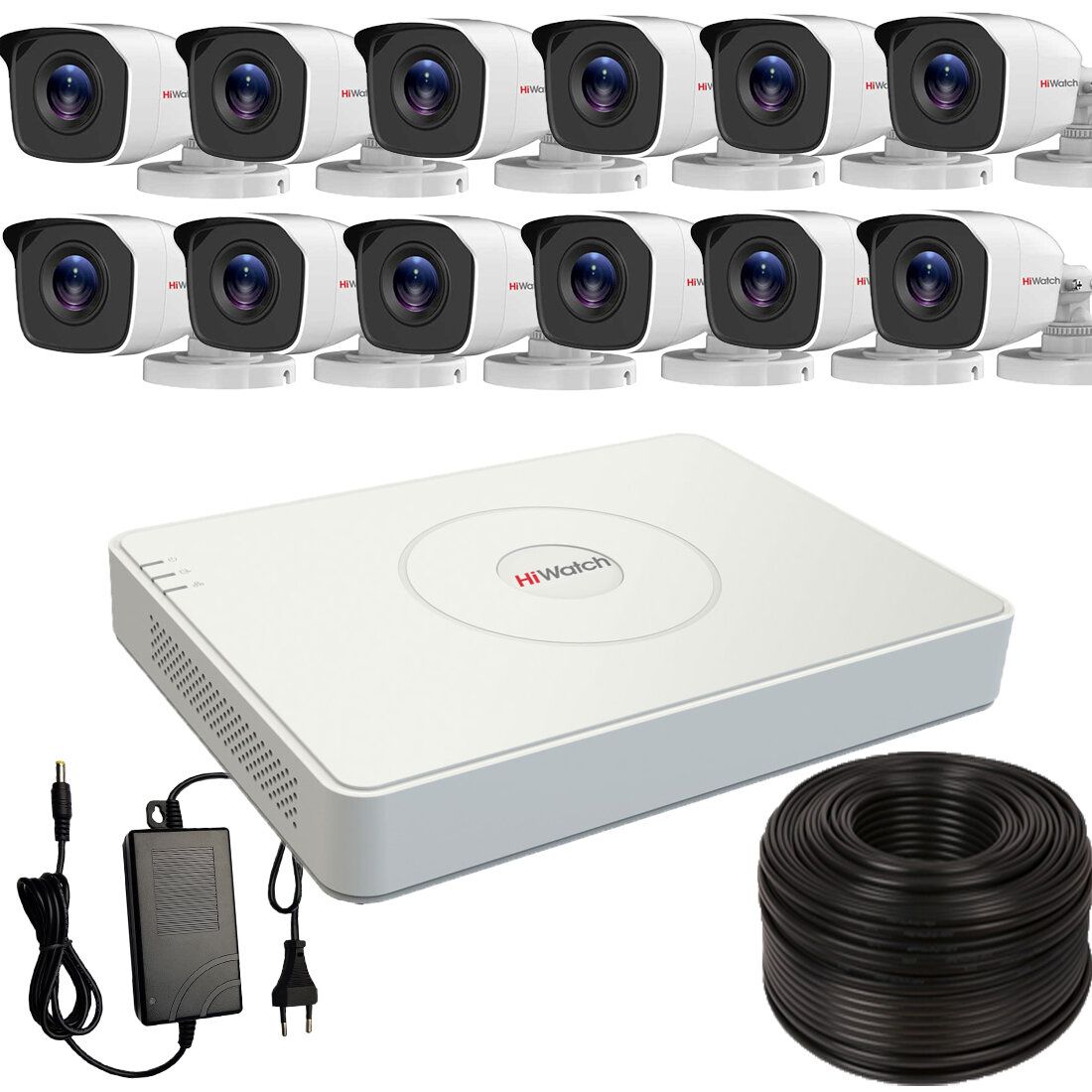 Комплект видеонаблюдения Hiwatch для улицы на 12 камер Full HD / Уличный комплект видеонаблюдения Hiwatch на 12 камер для дома/дачи/склада 2MP интересное: