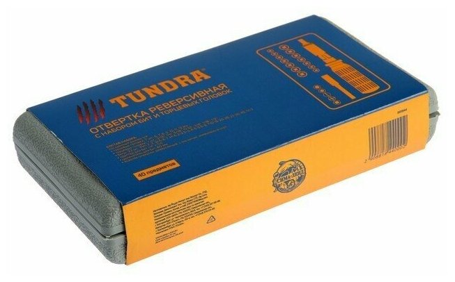 Отвертка с набором бит и головок тундра, реверсивная, в кейсе, 40 предметов. В наборе 1шт.