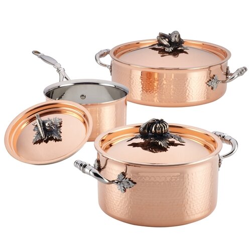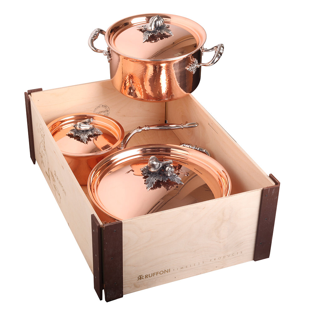 RUFFONI Набор посуды 3 пр., медь, крышки с посеребренной декорированной ручкой CZ06 Ruffoni Opus Cupra