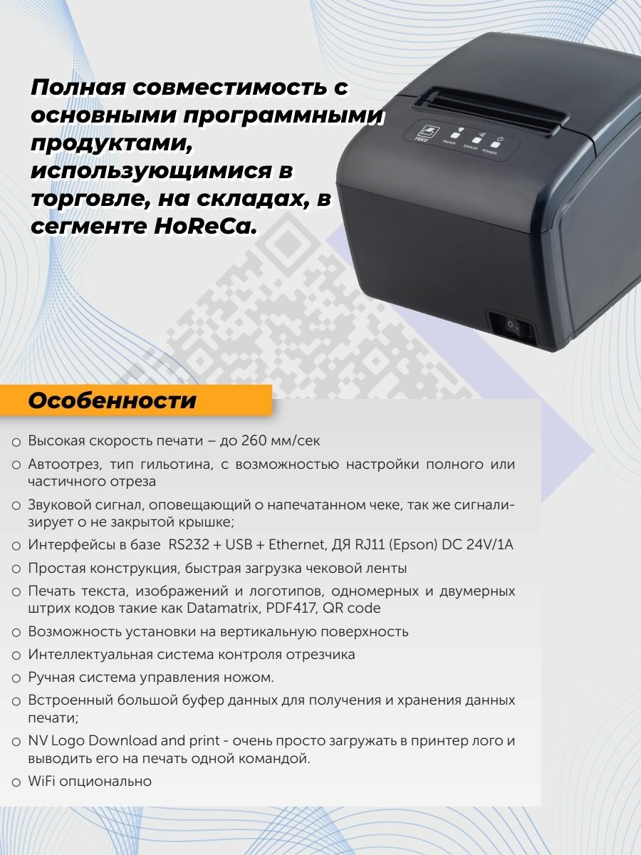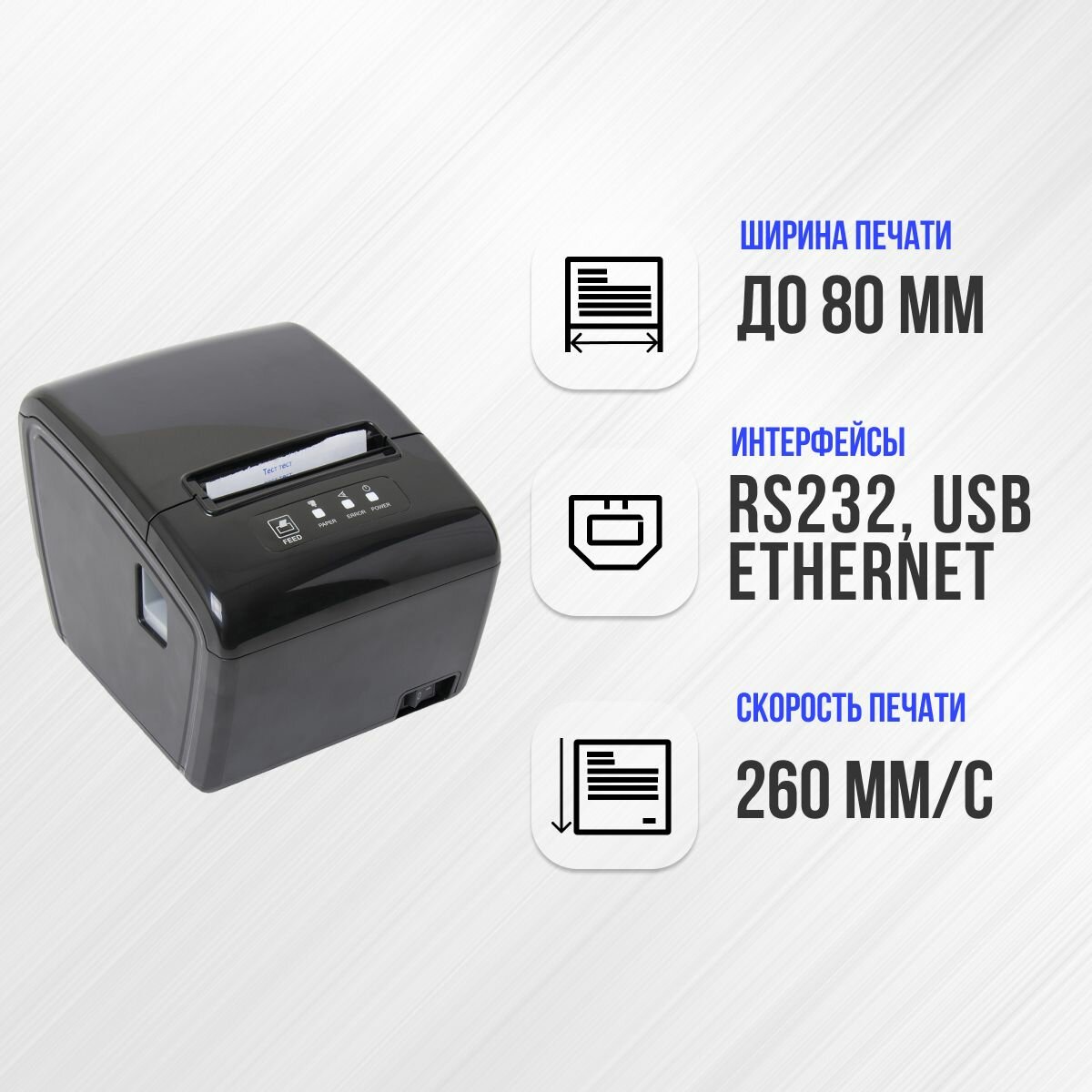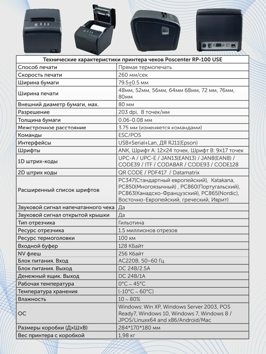 Принтер чеков Poscenter RP-100 USE (80мм, 260 мм/сек, автоотрез, RS232+USB+LAN) черный интересное: