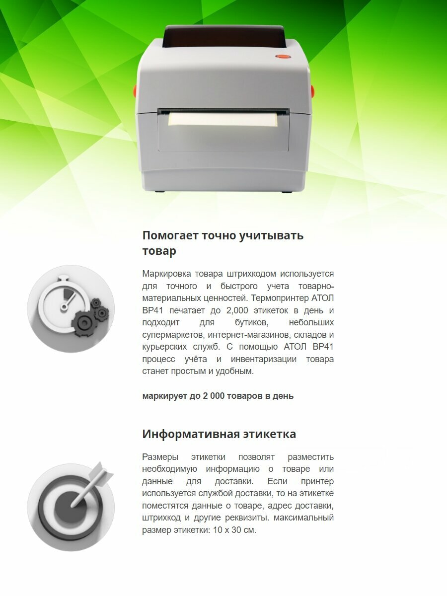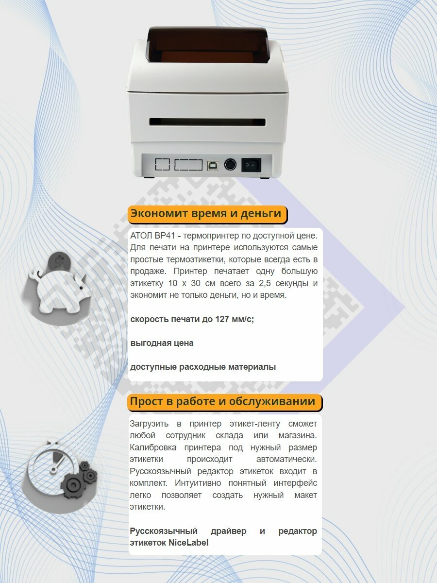 Принтер этикеток АТОЛ BP41, USB интересное: