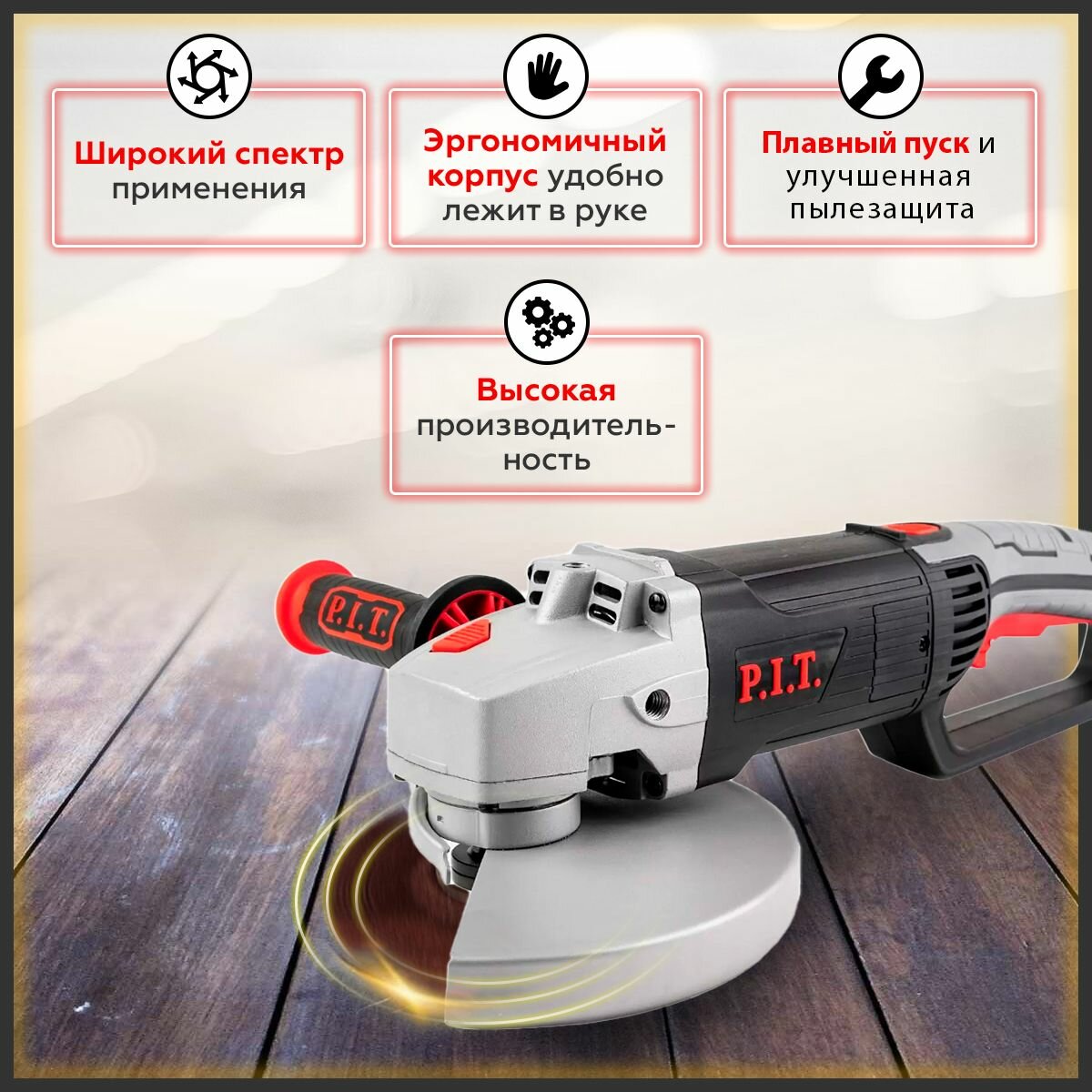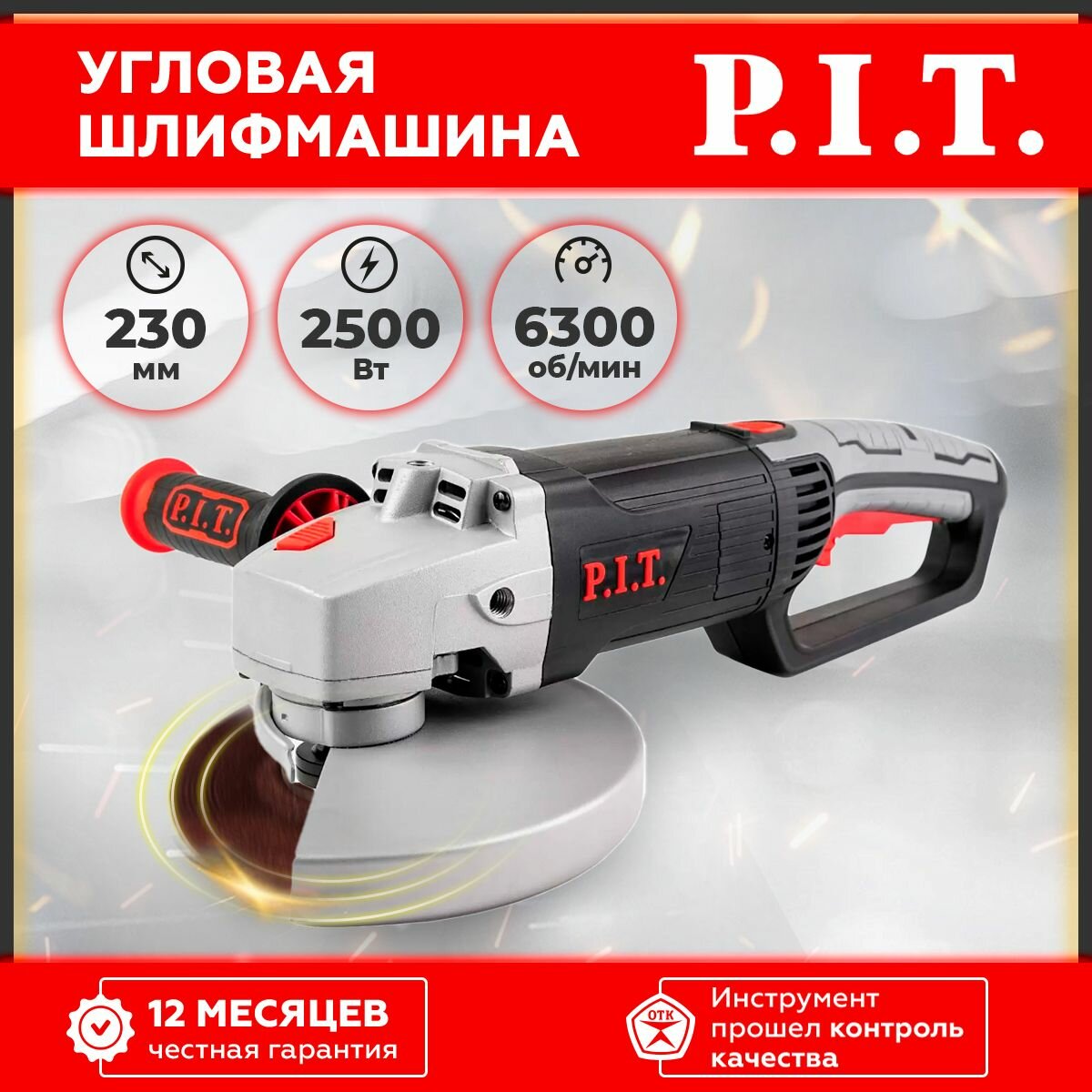 СохранитьШлифмашина угловая P.I.T. PWS230-C4 (230мм, 2,5кВт, плавный пуск, поворотная ручка) P.I.T интересное: