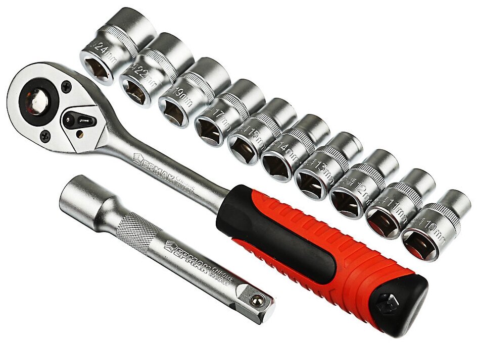 Ермак Набор профессионального инструмента, 12 предм., 1/2" (головки, удлинитель и трещотка)