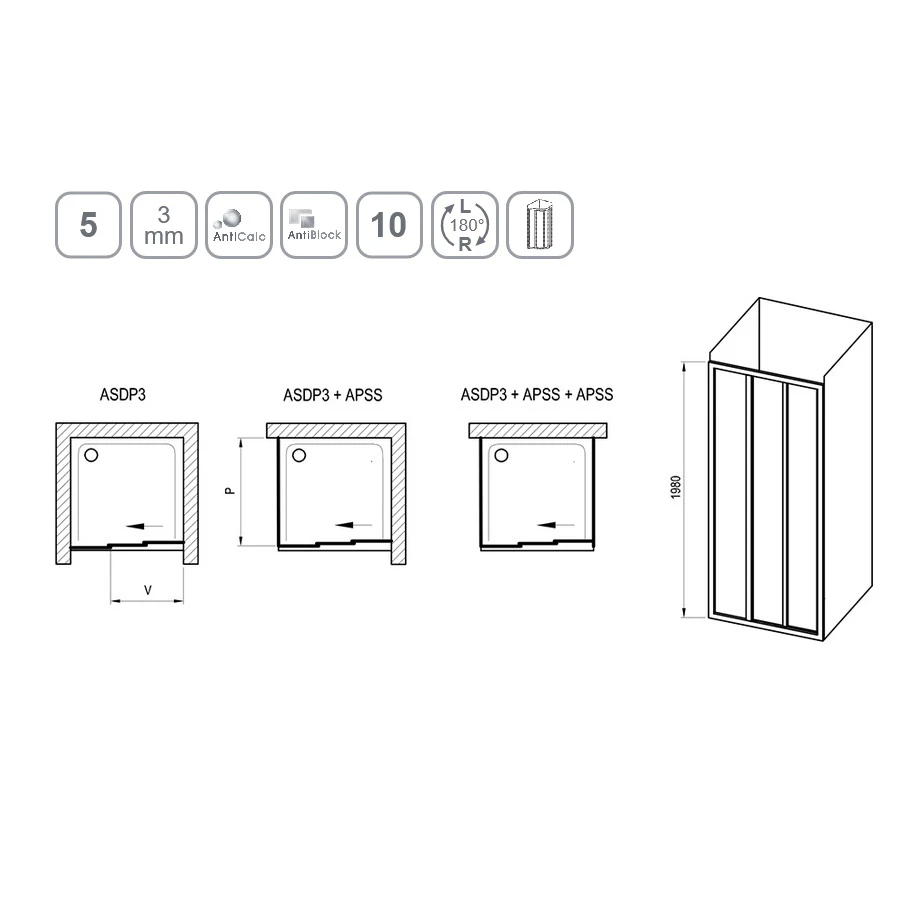 Душевая дверь раздвижная Ravak ASDP3-120 198 (черный+Transparent) 00VG03R2Z1 интересное: