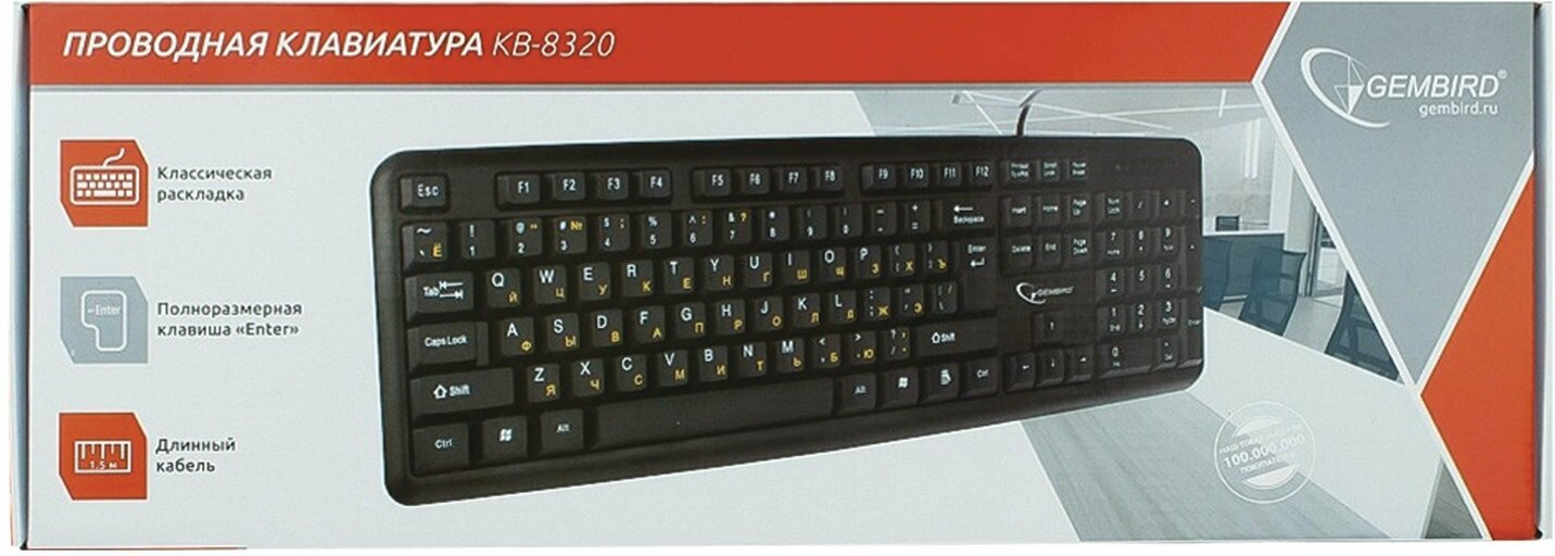 Клавиатура Gembird kb-8320u-bl, USB, черная, 104 клавиши .