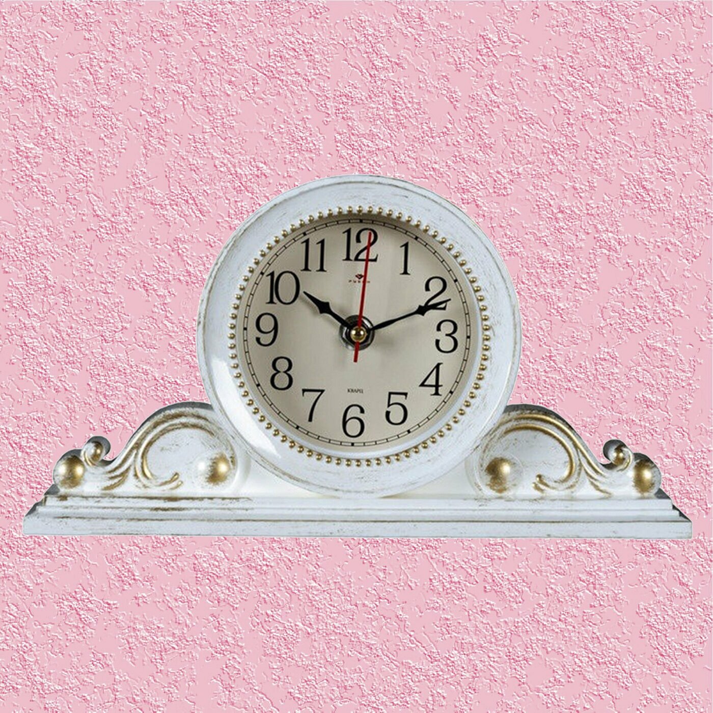 Ниже Вы можете прочитать отзывы на Часы настольные Рубин Классика корпус белый с золотом для спальни с плавным ходом арабскими цифрами пластиковый корпус и минеральное стекло 26 см, ознакомится с подробными характеристиками, посмотреть интересные обзоры и фотографии на Часы настольные Рубин Классика корпус белый с золотом для спальни с плавным ходом арабскими цифрами пластиковый корпус и минеральное стекло 26 см.