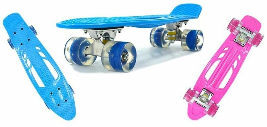 Скейт Navigator пласт.,кол.PU со светом 60х45мм, втулки PU, алюм.траки,56х15х9,5см, голубой