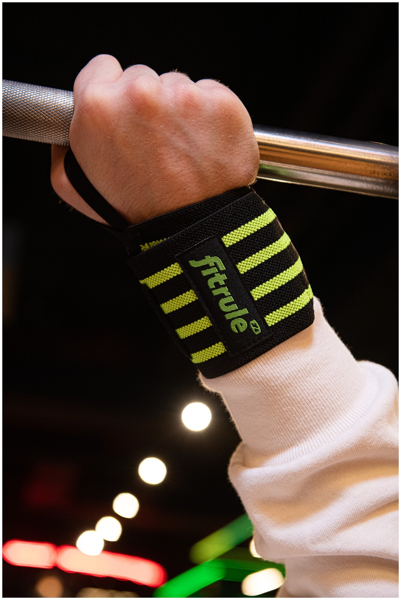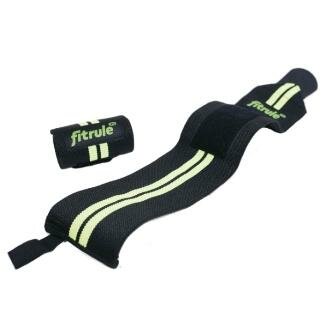 Бинты кистевые для жима, фиксатор запястья FitRule черно-зеленые LIGHT (пара), 50см