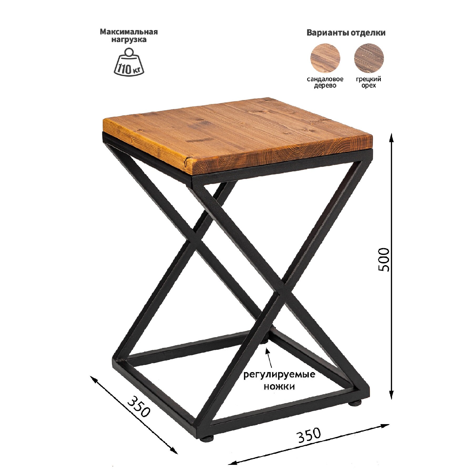 Табурет ilwi из стали и дерева темно-коричневый в стиле лофт высотой 50 см, "Икс"