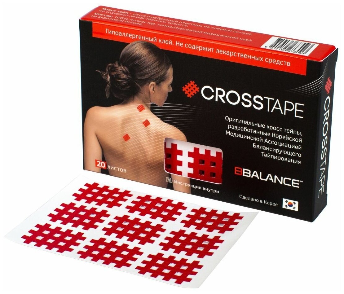 Купить BBTape Cross Tape 2,1см*2,7см (тип A, красный) Набор кросс тейпов для локальной стимуляции рецепторов организма