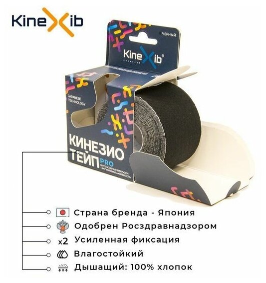 Кинексиб PRO кинезио тейп бинт нестерильный адгезивный восстанавливающий цвет черный 5м х 5см №1 интересное: