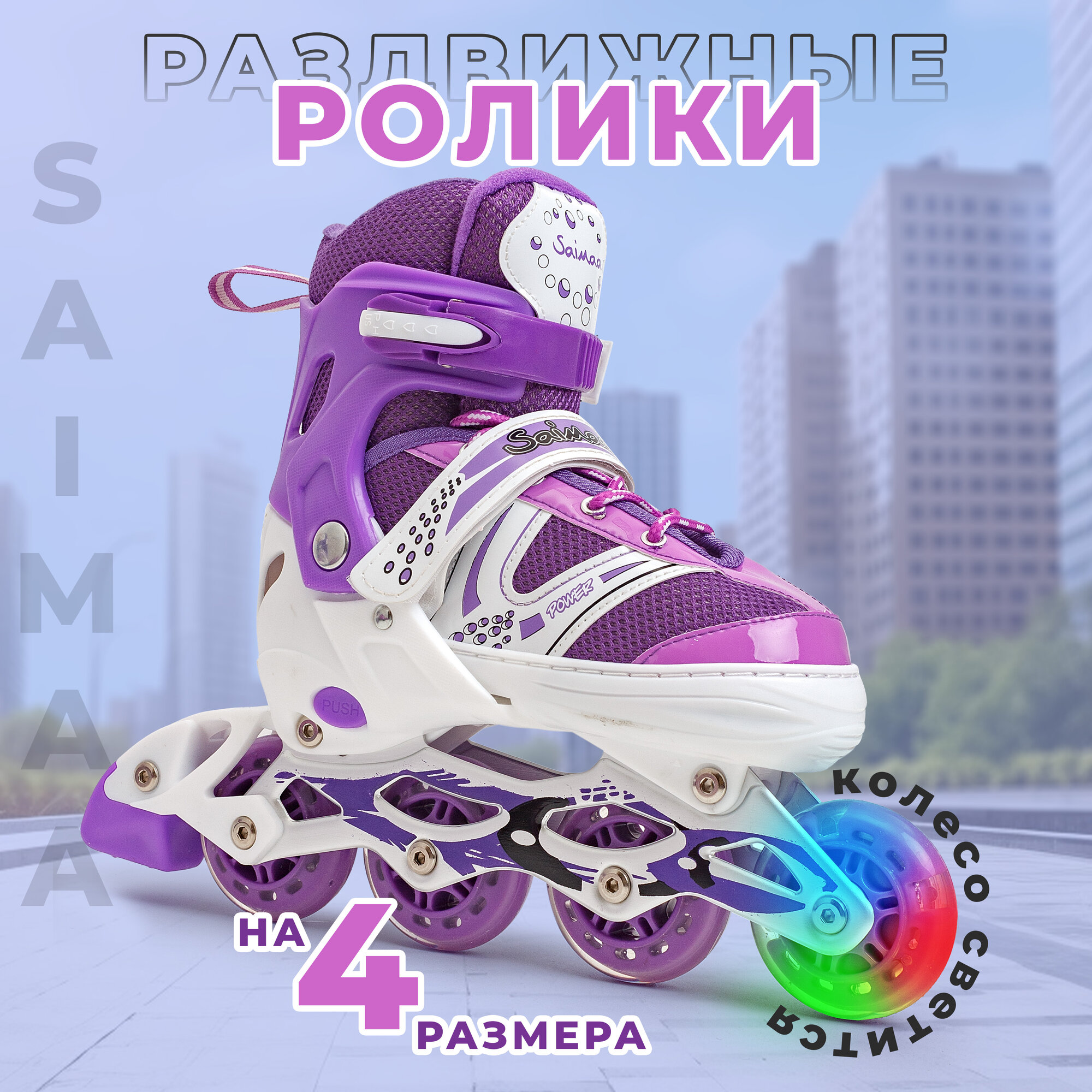 Роликовые коньки раздвижные детские S(31-34) цвет фиолетовый